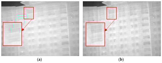 Denoising effects of ablation experiment on an image of a single building: (a) Non-MIDILatLRR; (b) proposed method.