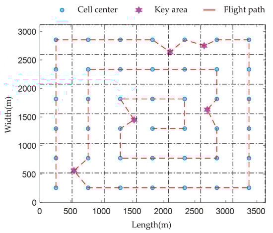 Input: cell center location, key area location, UAV coverage radius R Output: UAV cruise track The process: