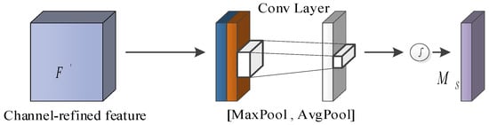 As shown in Figure 4, the input feature graph is processed by maximum pooling and average pooling to generate two feature graphs and . After the two feature graphs are spliced, the spatial feature graph is generated through the convolution layer, and can be computed by the following formula: