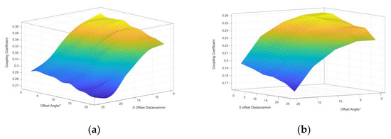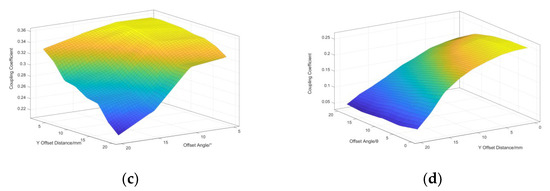 To further test the ability to resist multidimensional migration, the receiving coil is rotated based on migration along the X-axis, and the coupling coefficient changes of the new orthogonal coupling device and bipolar device are simulated and analyzed.