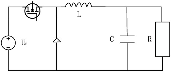 At , the switch tube is in the off state, and the inductance supplies power to the load R and the capacitor C at this time. The state equation of the system at this time is:
