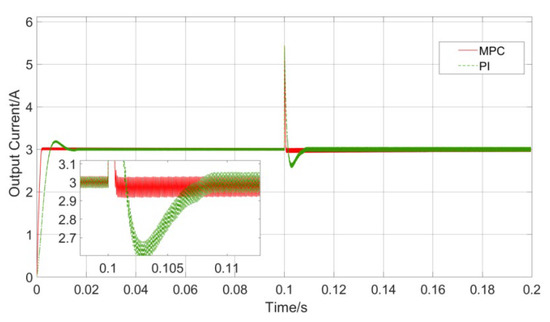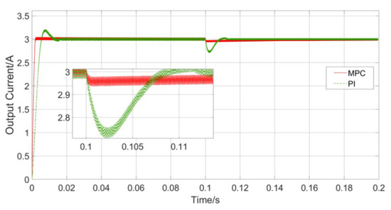 Figure 17 shows the response waveforms of the MPC and PI controllers when the load jumps.