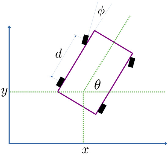 It is important to mention the following references related to the kinematics of mobile robots because they are crucial for this research study. For example, in [43], a kinematic Lyapunov-based controller is presented for mobile robots. Then, in [44], a kinematic-based control strategy for a spherical mobile robot driven by a 2D pendulum is shown. Meanwhile, in [45], a singularity free kinematic model of a degenerated mobile robot is obtained. Meanwhile, in the following references [46,47,48], the kinematic control and two kinematic models of mobile robots are presented.