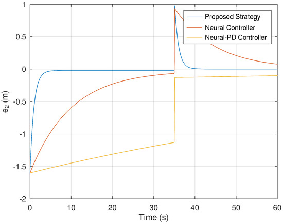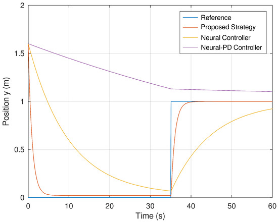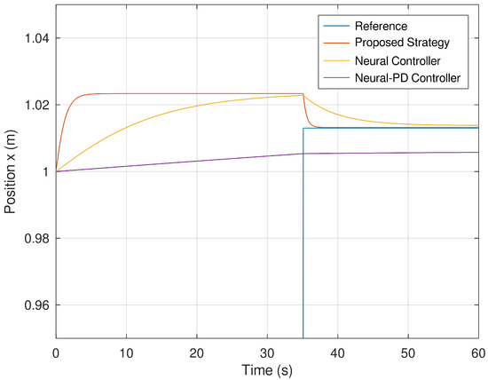 It is important to mention that the neural controller component of this hybrid control strategy comprises a standard feedforward neural network. The difference between the neural network implemented in this research study and the neural network used for comparison purposes is that the latest one is tuned and implemented standalone in comparison with the dynamic and neural network controller. It is important to mention that the neural network implemented for comparison purposes is marginally stable in comparison with the neural network which comprises the proposed hybrid control strategy, which is asymptotically stable.