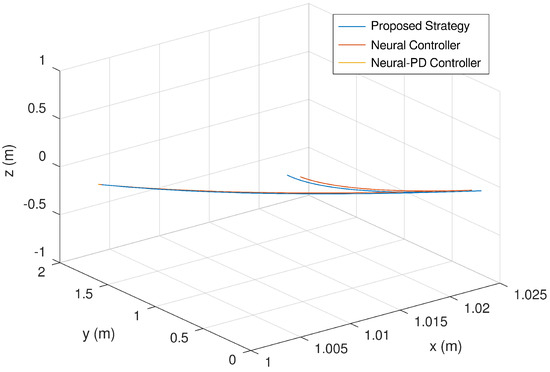 Then, Figure 13 presents the trajectory of the mobile robot in 3D. It is evinced that the trajectory tracked by proposed controller is significantly better than the neural and neural PD controllers.