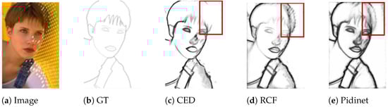 - Su, Z.; Liu, W.; Yu, Z.; Hu, D.; Liao, Q.; Tian, Q.; Pietikäinen, M.; Liu, L. Pixel Difference Networks for Efficient Edge Detection. In Proceedings of the 2021 IEEE/CVF International Conference on Computer Vision (ICCV), Montreal, BC, Canada, 11–17 October 2021; pp. 5117–5127. [Google Scholar]