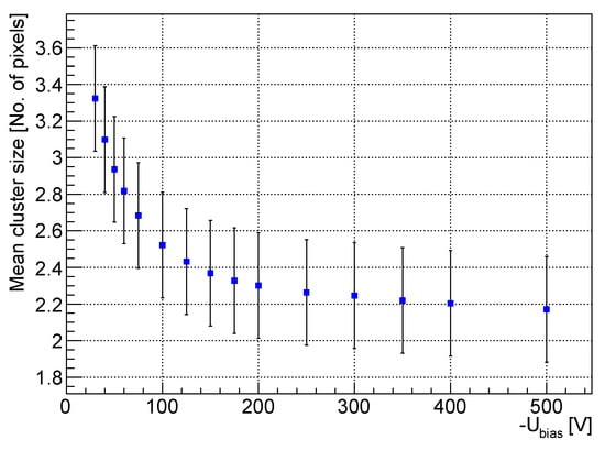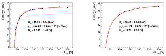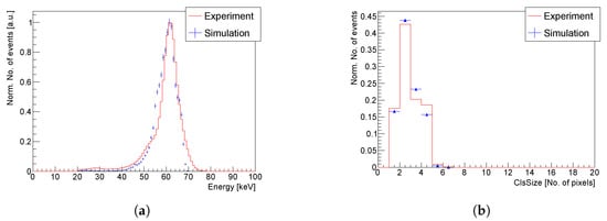 - Schioppa, E.J.; Idarraga, J.; Van Beuzekom, M.; Visser, J.; Koffeman, E.; Heijne, E.; Engel, K.J.; Uher, J. Study of Charge Diffusion in a Silicon Detector Using an Energy Sensitive Pixel Readout Chip. IEEE Trans. Nucl. Sci. 2015, 62, 5. [Google Scholar] [CrossRef]