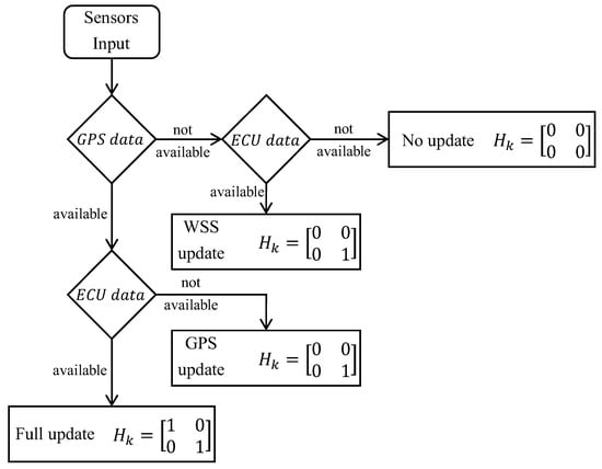 with and being Boolean values depending on GPS and ECU data availability, as depicted in Figure 6.