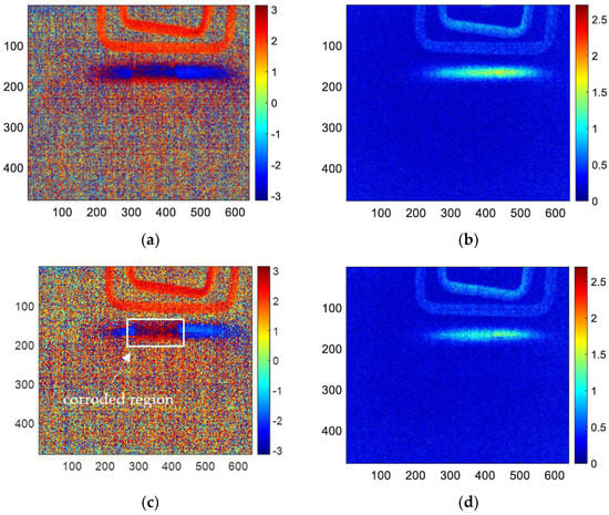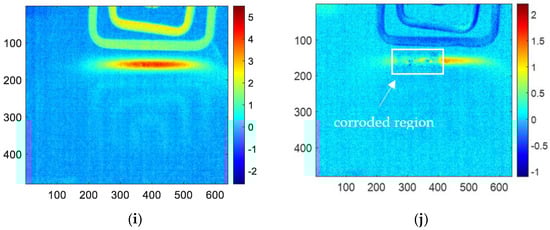 However, for long-term corrosion, the situation is much more complex. Figure 13c presents a more complicated surface state than that of the early corrosion stage. Material is loose and flakes off making Joule heat generated, distributed, and conducted in a different layer, which means the infrared information can hardly characterize the corrosion’s physical properties. That is why the previous research only investigated the early corrosion before 6 months of exposure time.