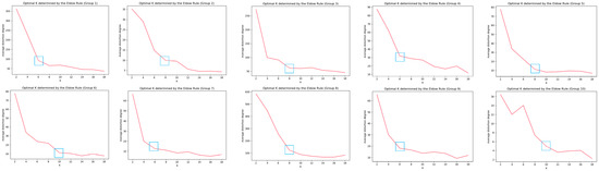 The number of cluster centers is determined using the elbow method [54]. Due to the continuous optimization of the cluster center and smaller quadratic sum, the first inflection point appearing in the change of the quadratic sum is chosen as the best K value.