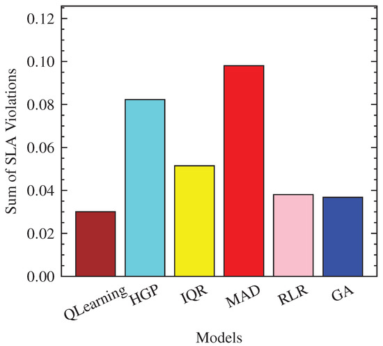 The SLA is determined based primarily on the response time. The response times of migrations are sorted in ascending order; then, calculating the value at the 95th percentile, the algorithm determines the threshold response time that 95% of the requests should meet to satisfy the SLA. Any response time exceeding this 95th percentile value would be considered a violation of the SLA.