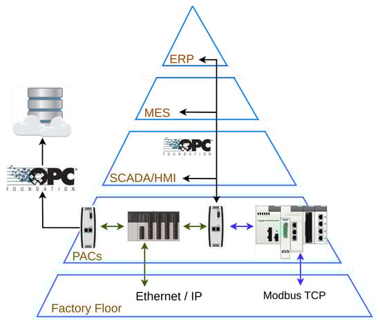 Automation pyramid and the use of OPC-UA to integrate all the floors.