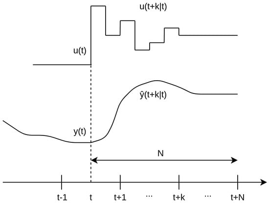 All MPC algorithms share essential components, such as the prediction model, objective function, and control law derivation. The methodology of all controllers belonging to the MPC family is characterized by the strategic process depicted in Figure 4.