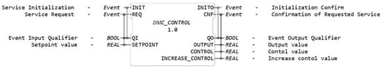 - Modular and vendor-independent approach: The use of IEC-61499 FBs provides a modular and vendor-independent approach to control system design. This facilitates the flexible deployment and integration of DMC-based control strategies within distributed industrial systems, enhancing system flexibility and adaptability;