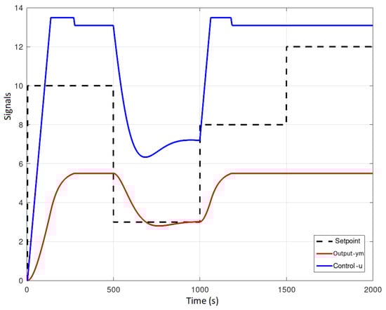 The control problem has been formulated in Equation (4) considering all signals to possess an unlimited range, but in practice all processes are subject to constraints. Actuators have a limited range of action and a limited slew rate, for constructive and/or safety reasons, as well as sensor range, and cause bounds in process variables, as in the case of levels in tanks, flows in pipes, and pressures in deposits [34].