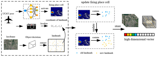 According to the system introduction, we describe the entire system from three parts: the brain-inspired spatial representation, landmark matching, and UAV’s pose estimation. The implementation details are introduced as follows.