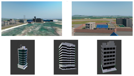 Besides, the area of the outdoor scene is 30 km2, which contains the airport, country, lake, hill, etc. The platform is constructed using the real terrain and satellite photos, and the real terrain uses the mesh generated via surveying and mapping. To improve the precision of the virtual scene, we use a 3D model to reproduce the real scene at some feature abundant place such as the airport and buildings in urban area, as shown in Figure 6. Through these operations, the platform can replicate the real scene to more than 80%.