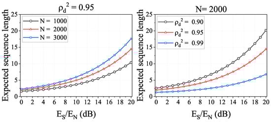 Additionally, we plot the results in Figure 12. The first observation is that the expected sequence length increases over and decreases over . This is easy to understand, since we have demonstrated above that the IfrPS detection performance is positive in relation to and negative to . The second observation is that, for different levels of FAR in IfrPS detection, the obtained M has quite a significant value. For instance, when the FAR is fixed at , i.e., the attacker can only compromise the IfrPS detection with the probability of , the obtained M is more than 10 when and . Since such parameters are easy to satisfy in practical applications, whereas the corresponding parameter () results in only about 2 dB degradation to message demodulation, the results in Figure 12 demonstrate the potential of enhancing the RFFA by adopting the IfrPS design and using the MFS-based approach.