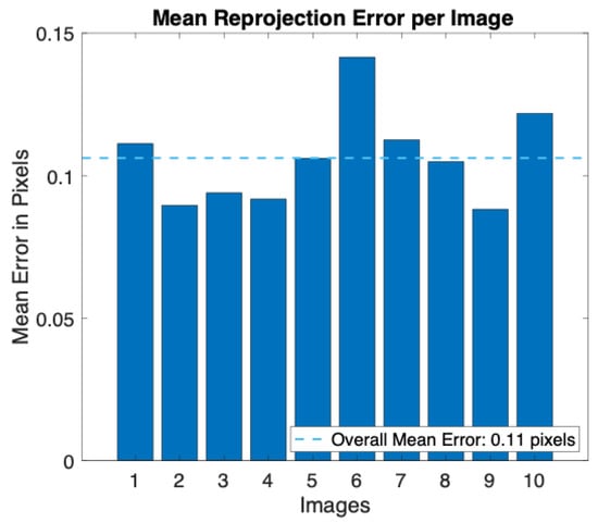 Bar plot of the mean reprojection error per image obtained during the calibration procedure.