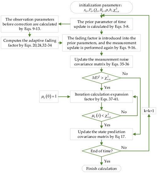 In summary, we give the adaptive robust correction strategy of the HCKF, and the specific process steps of the algorithm are shown in Figure 1.