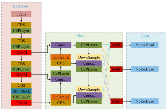 - ASFF is taken advantage of in the Neck section to enhance the extraction of multi-scale semantic information of defects. ASFF is implemented in the feature fusion network, which allows the model to learn the semantic information from different feature layers and assign appropriate weights to each feature map layer. It can improve the accuracy of the network detection.