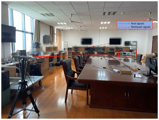 Experiment scene designed to satisfy the conditions required for coherent signals; we performed experiments inside of the room.