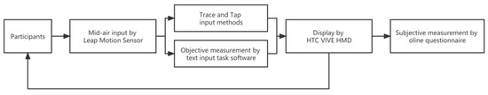 Upon providing informed consent, the participants devoted a minimum of 30 min to acquainting themselves with the proper utilization of the tap and trace input techniques via Leap Motion. This practice persisted until the completion of five precise phrases entered using each method. Such measures ensured that the eventual experimental data exclusively reflected variances between the input methods, as opposed to unfamiliarity with the Leap Motion system. Following this, participants received concise instructions on employing the VR headset and controllers.
