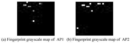 Computers recognize images simply by identifying the colors of pixels, and image storage also involves the conversion of colors to a numeric type to yield a sizeable numeric matrix by which the image information is stored [36]. As CNNs are generally composed of RGB values for image recognition tasks, this color feature is handy for recognizing objects of different categories. However, within the same type, color is not as important; texture features are more important. As RSSI signal strength attenuation between neighboring APs located in large-scale scenes is readily apparent and it is easier to obtain prominent differences in location features when processing fingerprints at the image level, this paper created a floor-level large-scale dataset by combining a single-channel Wi-Fi fingerprint grayscale map with the UJIIndoorLoc database.