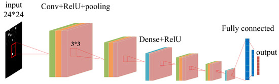 The typical structure of a CNN is shown in Figure 3. A CNN consists of an input layer (input is a digital matrix of the original image), a stacked convolutional layer, a pooling layer, a fully connected layer, and an output layer [35].