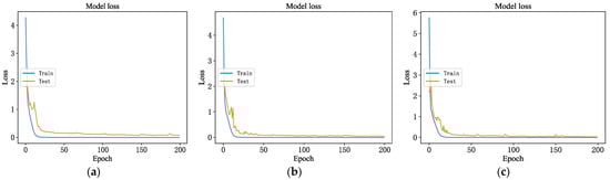 Loss value in the training process. (a) Loss value of vibration sensor; (b) loss value of acoustic sensor; (c) loss value of temperature sensor.