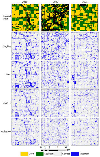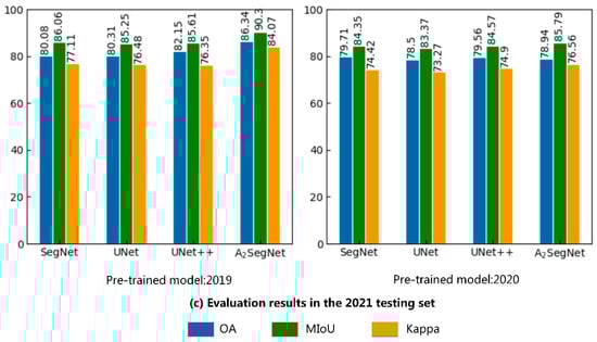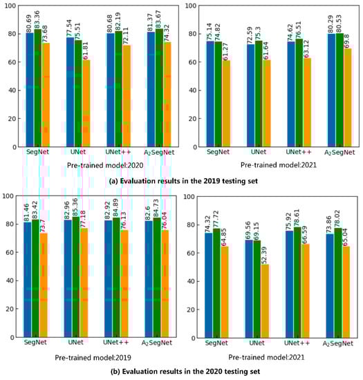 | Year | Evaluation Index | RF | SegNet | UNet | UNet++ | A2SegNet |
