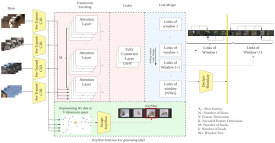 Shot features extracted from the pre-trained 3D CNN are transformed to encoded features using a four-head, six stacks of self-attention networks—N is the number of shots in a video. The linker is implemented using a three-layer fully connected neural network, as detailed in Table 2.