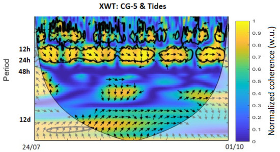 Wavelet coherence of theoretical solid Earth tides (Tsoft) and CG-5 data.