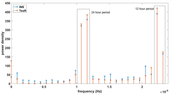 Frequencies corresponding to the periods of 12 h and above of the Tsoft and INS data.