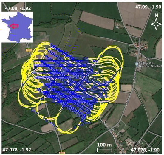 The data used in this study were acquired over a period of four days from the 27 March until the 30 March 2021. The locations of the flights were in fields in the commune of Saint-Hilaire-de-Chaléons in Western France (Figure 11). During this period, these flights were conducted within the framework for another project [19].