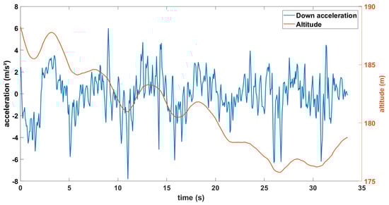 Down acceleration (m/s²) for the straight lines considered and the corresponding altitudes (m).