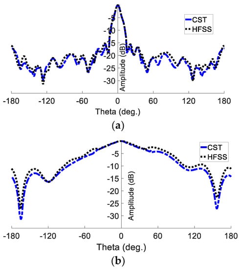 Simulated far-field pattern of the planner GAA at 24 GHz: (a) E plane; (b) H plane.