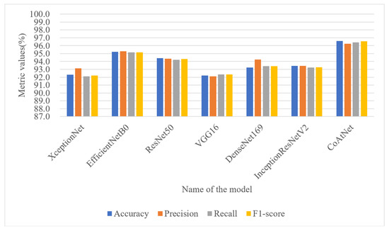 For evaluating the performance of the model, this study employs four widely utilized evaluation metrics: Accuracy (Acc), Precision (Pre), Recall (Rec), and F1-score (F1). These metrics hold significant prominence within the research community, ensuring a comprehensive assessment of the model’s effectiveness [29,30,31]. To provide clarity on these evaluation metrics, the definitions are presented below:
