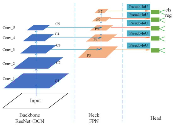 After extracting features through the backbone network and FPN, the pseudo-IoU assigns positive or negative labels to points P3–P7 in the feature maps. The location of any point on the feature map of the Pi layer can be mapped back to the original input image. If the mapping coordinates of the point fall into the ground truth box in the original image, this point is designated as a positive sample, otherwise, the point is designated as a negative sample.