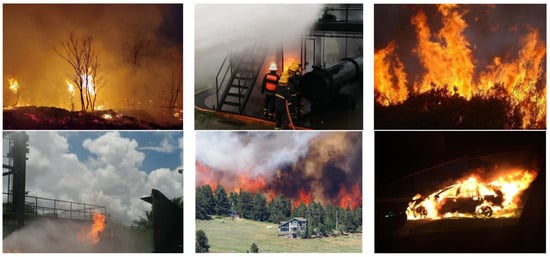 Fire can cause serious casualties and loss of property. It is important to be able to automatically detect flames or smoke and sound alarm at the earliest opportunity. Previous fire detection methods based on physical sensors have limitations, including limited use space, high costs, and false positives. Increasing attention has been paid to fire detection algorithms based on images due to their intuitive and real-time characteristics [,].