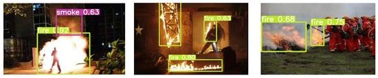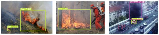 Part of the detection results pictures are shown in Figure 9. The results show that the proposed AAA accurately detects smoke and fire in both forest and urban scenes.