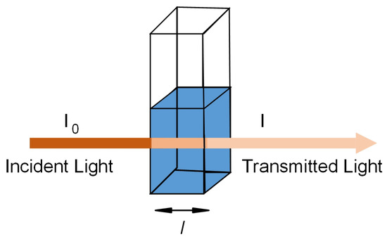 The transmittance, T, of the solution, is defined as the ratio of the transmitted intensity, I, over the incident intensity, I0, as shown in Figure 5 and represented by