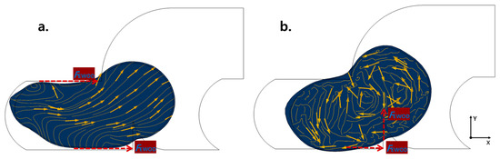 Figure 5a), and the particles rotate counterclockwise around the center of the droplet (