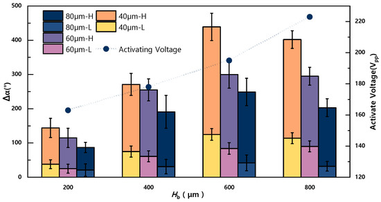 It was also observed during the experiment that the activation voltage threshold increases with increasing Hb, which is attributed to the decrease in wetted area.