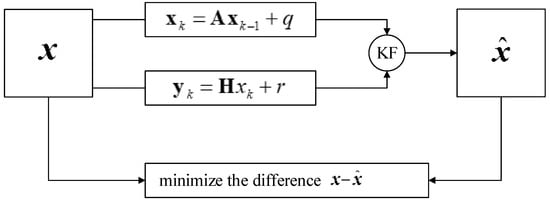 refers to the state vector at moment k. refers to the observation vector at moment k. A refers to the state-transition matrix from moment k to moment k − 1. H refers to the gain matrix from the state vector to the observation vector. q and r refer to the input noise and the observation noise, whose covariance matrices are represented by Q and R. Supposing that is the estimated value at moment k and is the adjusted value at moment k, then the following is true.