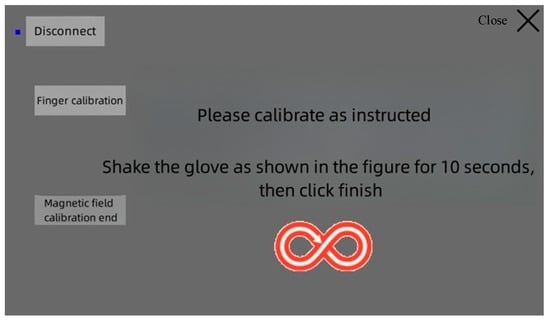 (2) Initial palm attitude calibration: While wearing the data glove, the user followed the operation shown in Figure 32. Clicking on “end attitude calibration” completed the hand attitude calibration.