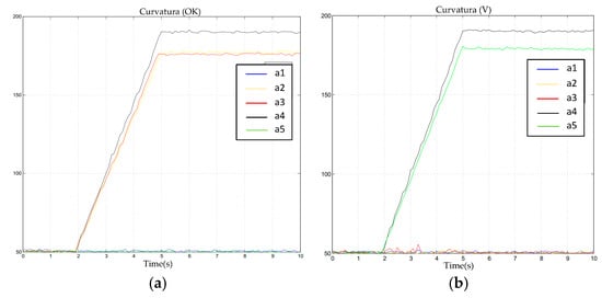 Output waveforms of static gestures. (a) Data waveform of gesture “ok”. (b) Data waveform of gesture “v”.
