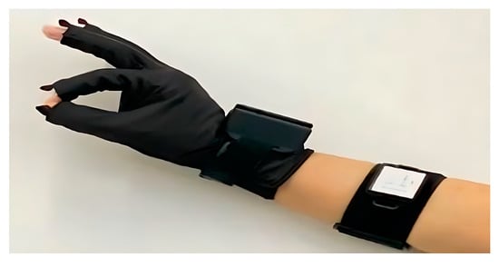 - Huang, X.N.; Wang, Q.; Zang, S.Y.; Wan, J.X.; Ren, X.M. Tracing the Motion of Finger Joints for Gesture Recognition via Sewing RGO-Coated Fibers onto a Textile Glove. IEEE Sens. J. 2019, 19, 9504–9511. [Google Scholar] [CrossRef]