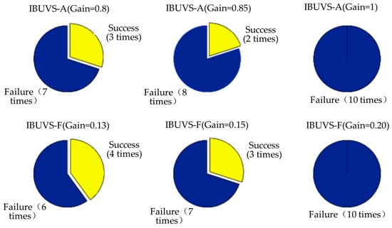 Figure 15 shows the comparison of the control conditions of the two schemes when the three sets of large gains are taken. It can be seen that the two schemes have different degrees of servo task failure in ten independent experiments, and when the gain continues to increase, the two schemes have failed to complete ten experiments.