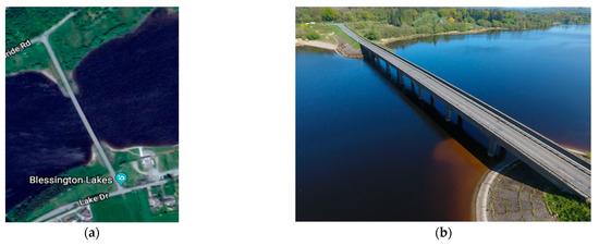 Blessington bridge and surrounding environs: (a) satellite image; (b) aerial image.
